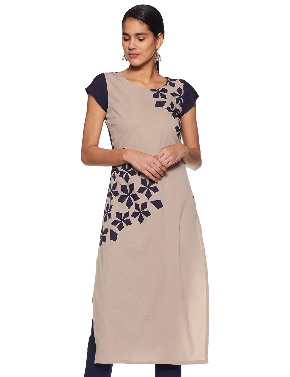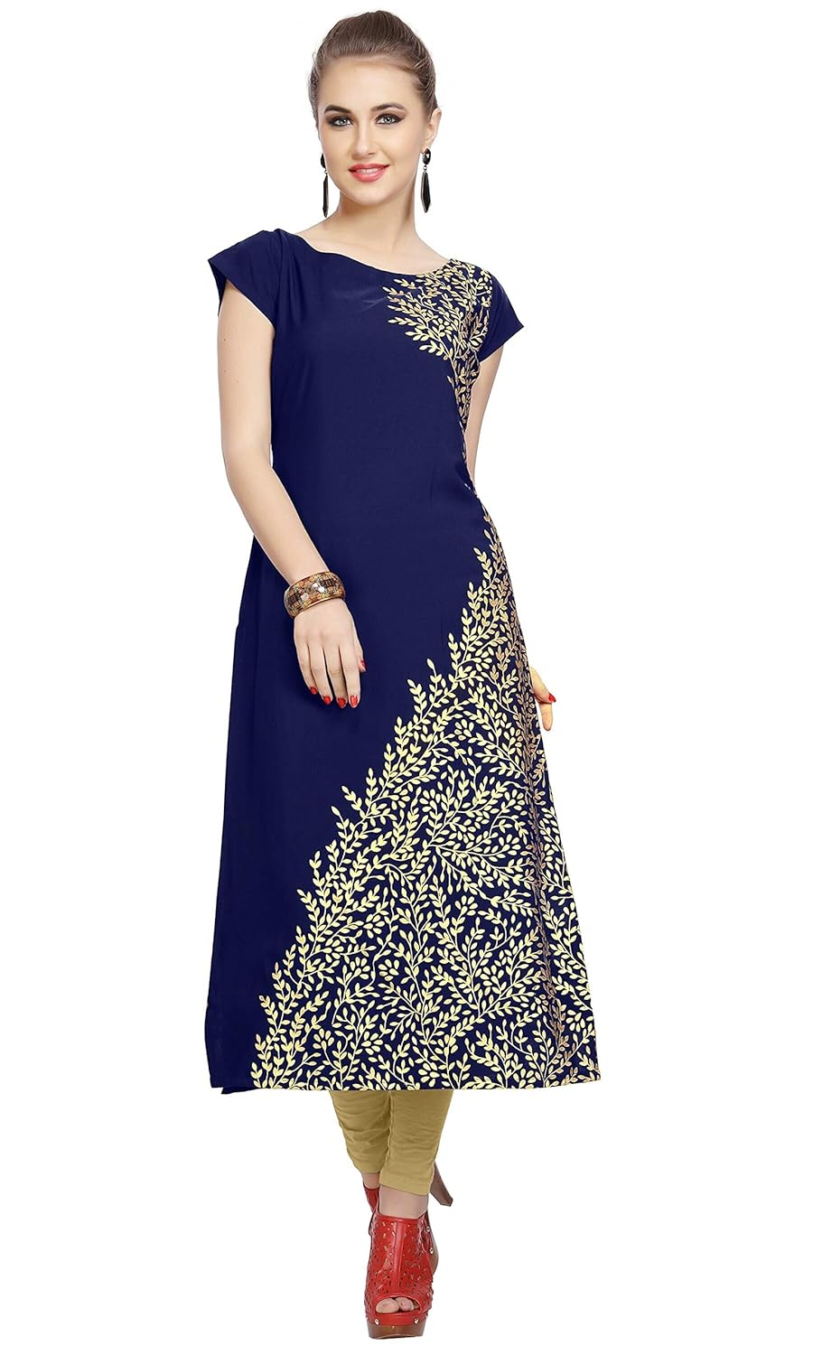ZIYAA Women's Blue Color Floral Print Straight Crepe Kurta